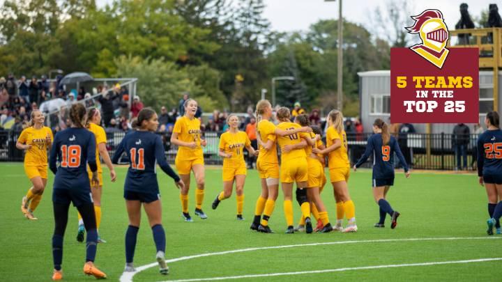 While having five varsity teams in one season inside the Top 25 seems impressive—it’s not unusual for Calvin. Just this past year, both Calvin’s portfolio of fall and spring sports teams had five squads ranked inside the Top 25 at the same time.
