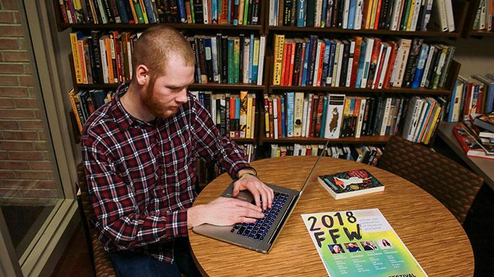 Now, in just two years, Ford has gone from curious observer to helpful guide. Ford is on Festival’s student committee and is one of the Calvin Center for Faith & Writing’s five Hudson-Townsend Student Fellows. One of his responsibilities in advance of the Festival is getting to know the speakers’ work and helping write bios for the website and program.